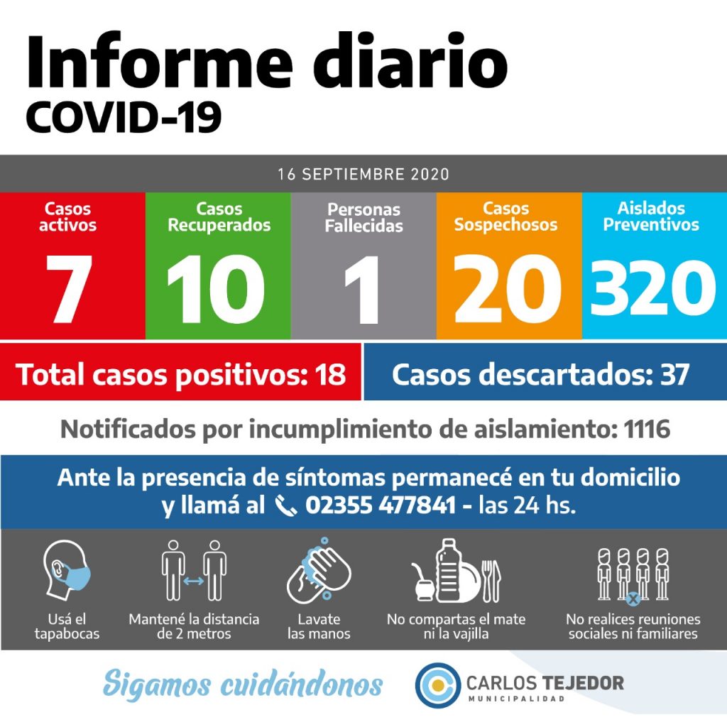 Remarco a los ciudadanos que sigan cuidándose mucho para salir rápido de esta situación sin dejar de lado el agradecimiento a los trabajadores de la salud, e intrahospitalarios y voluntarios .